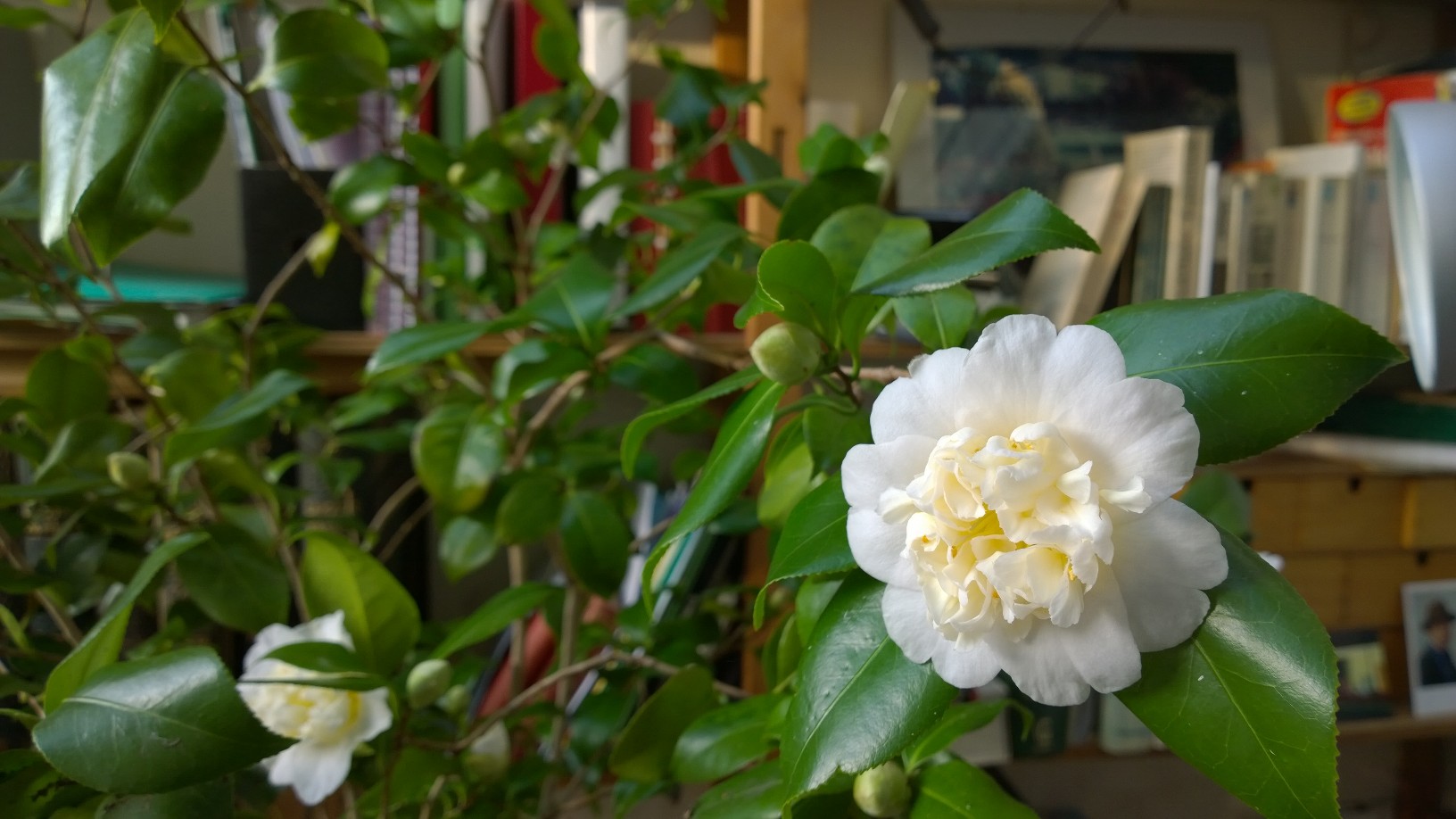 Mon camélia blanc, en fleurs depuis le 20 décembre – Jusqu’en 2013, c’était à partir des 5-10 janvier