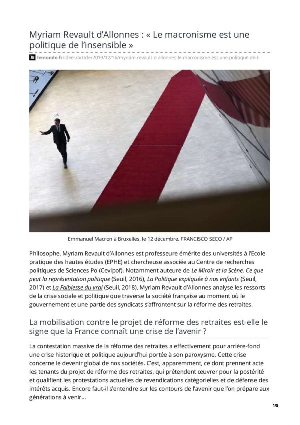lemonde.fr-Myriam Revault dAllonnes Le macronisme est une politique de linsensible G L 29 décembre 2019 0 commentaire